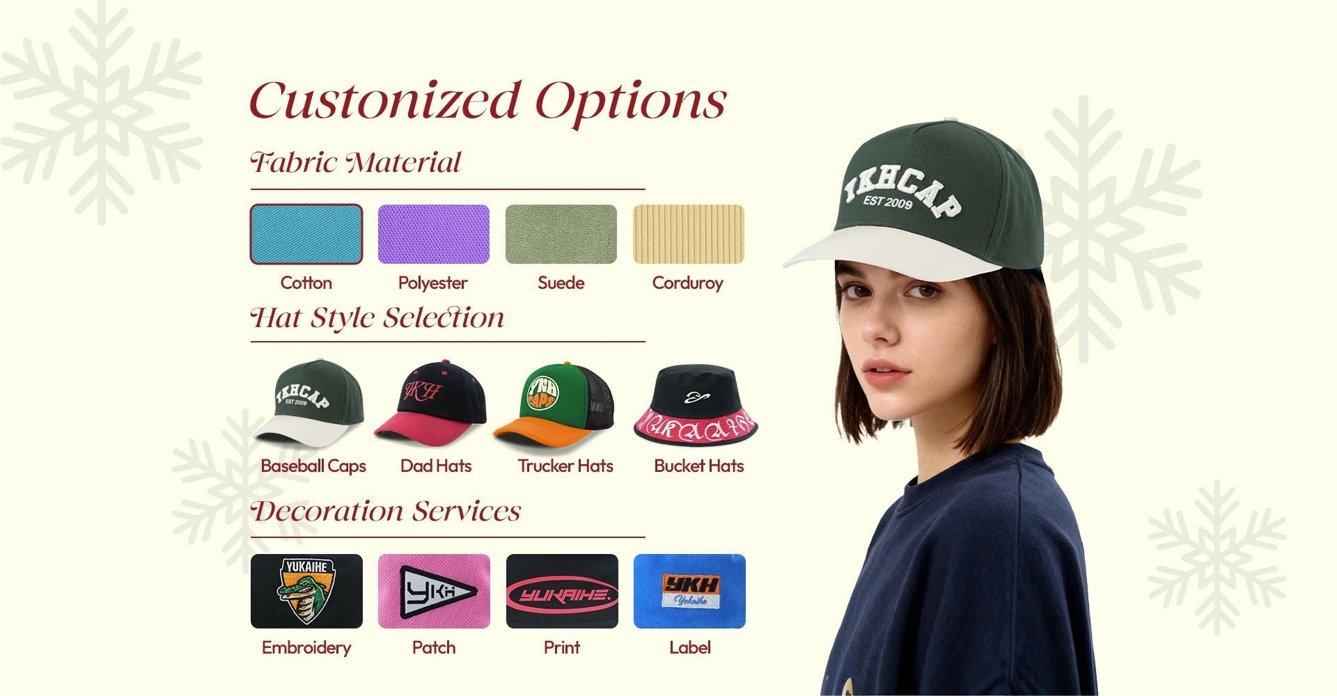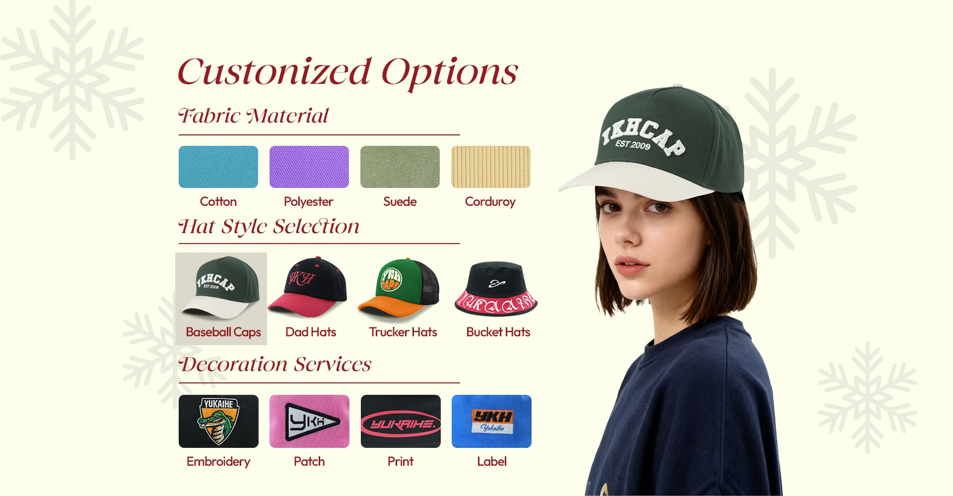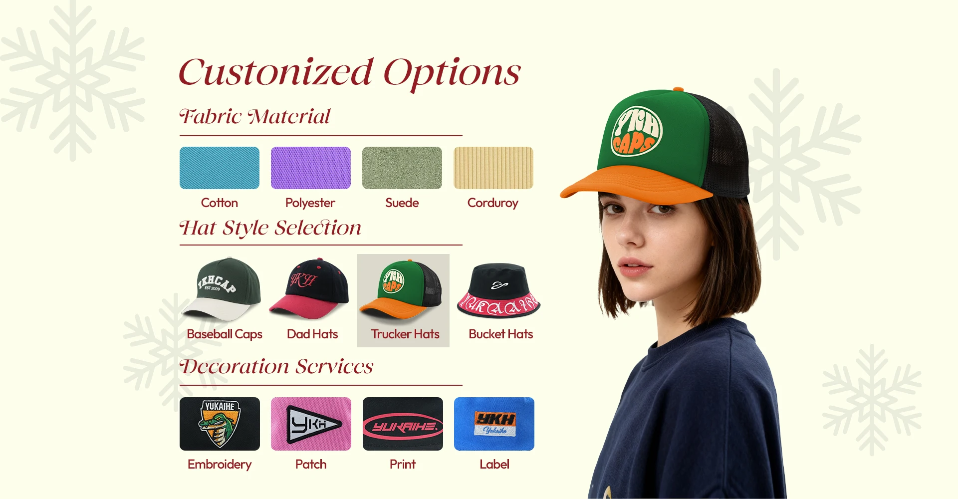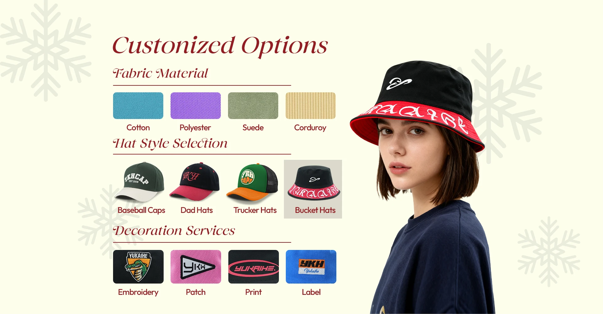 Sản Phẩm chính: Mũ bóng chày, mũ Trucker, mũ cha, mũ xô, Beanies