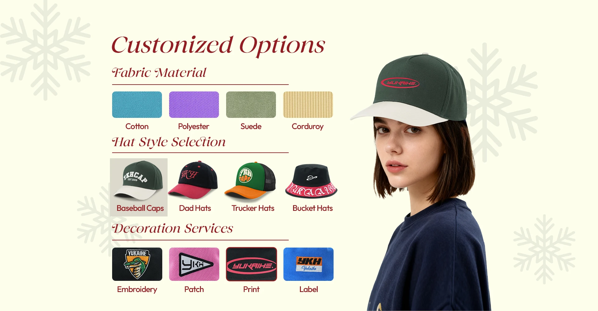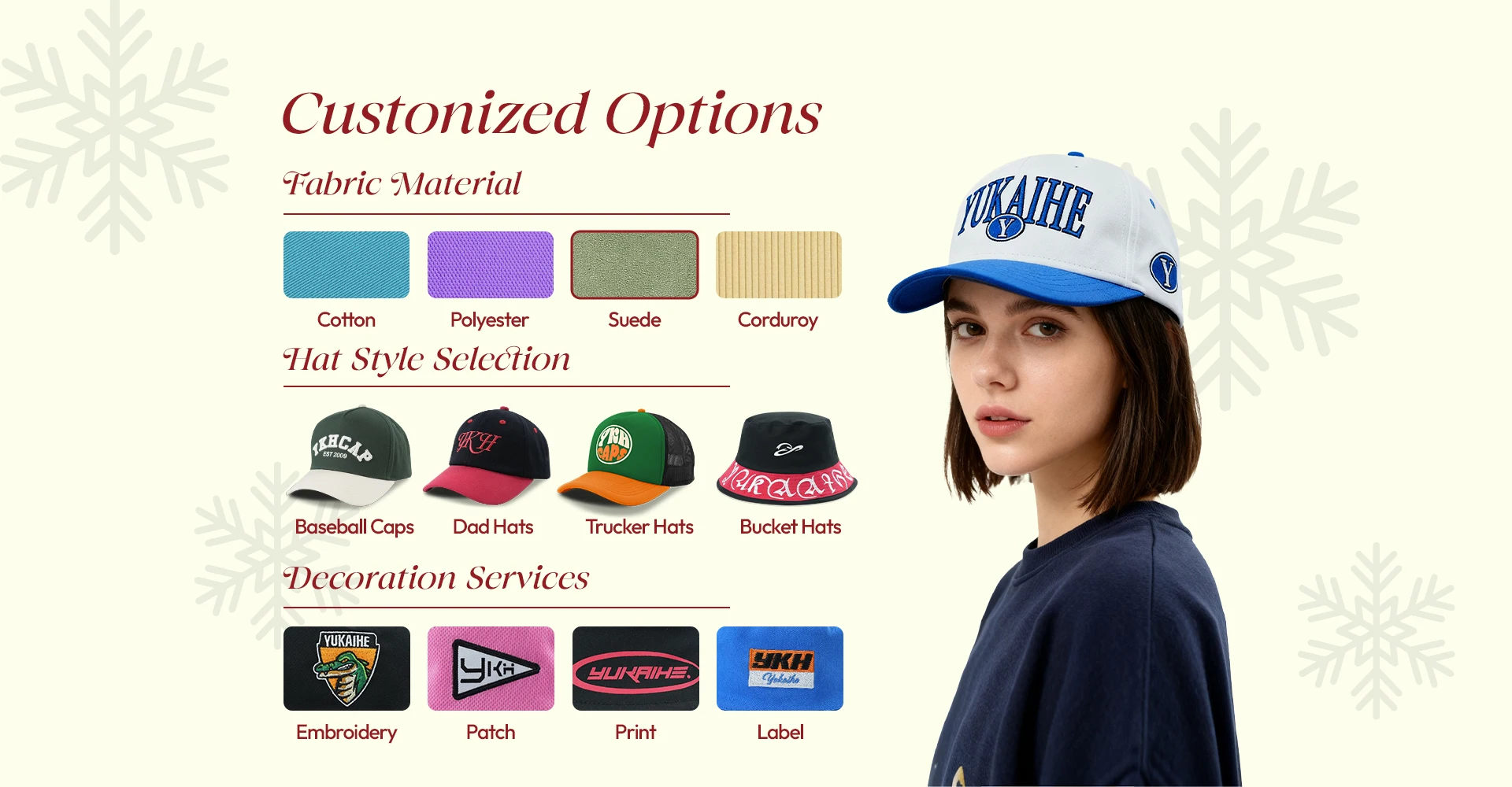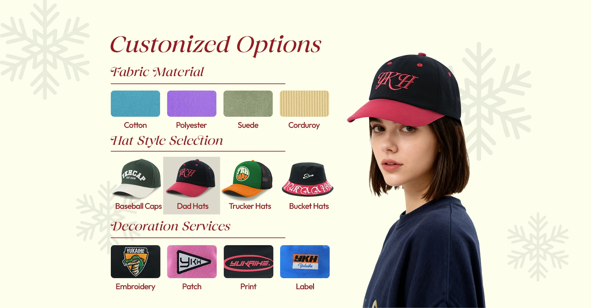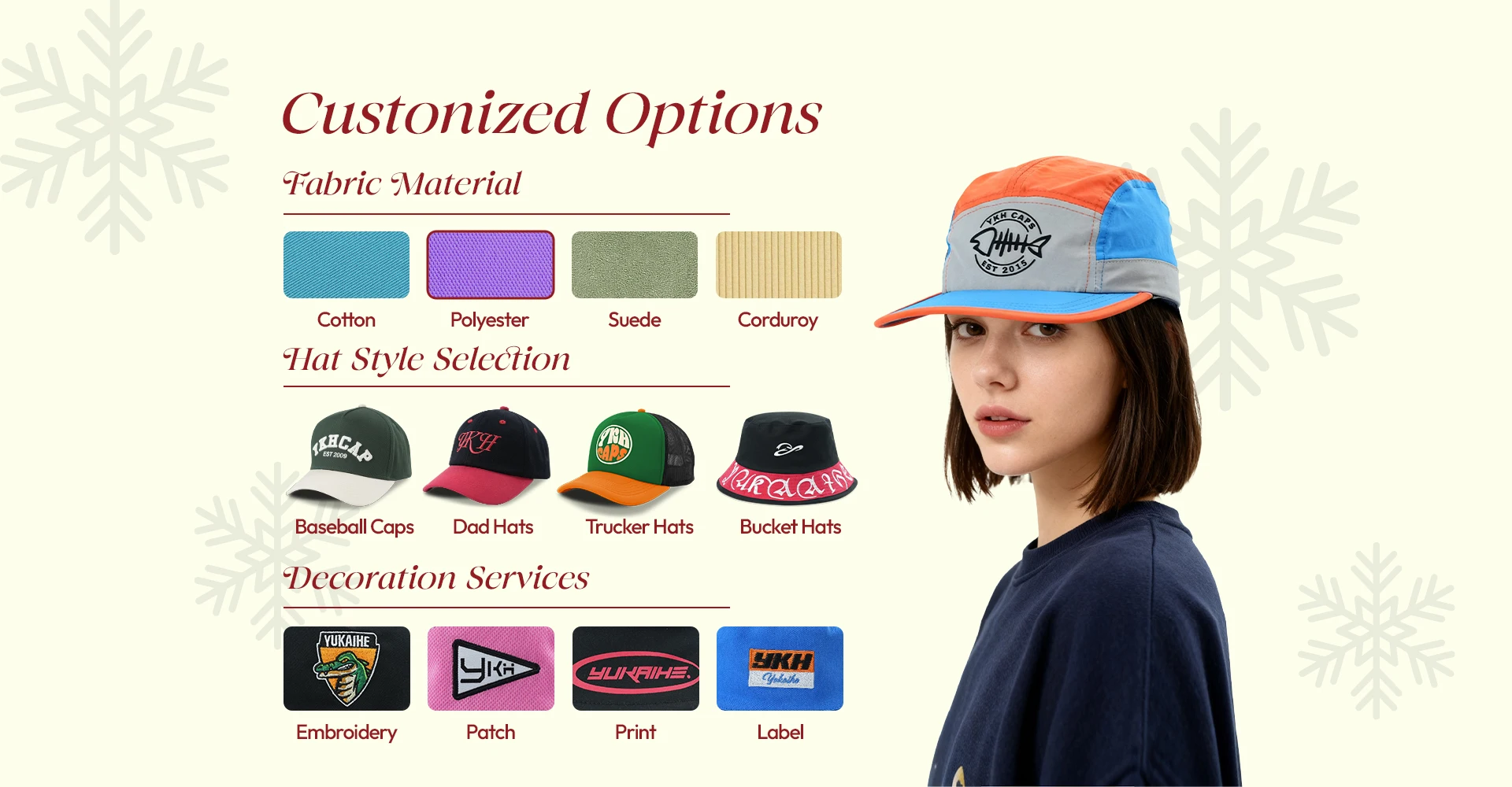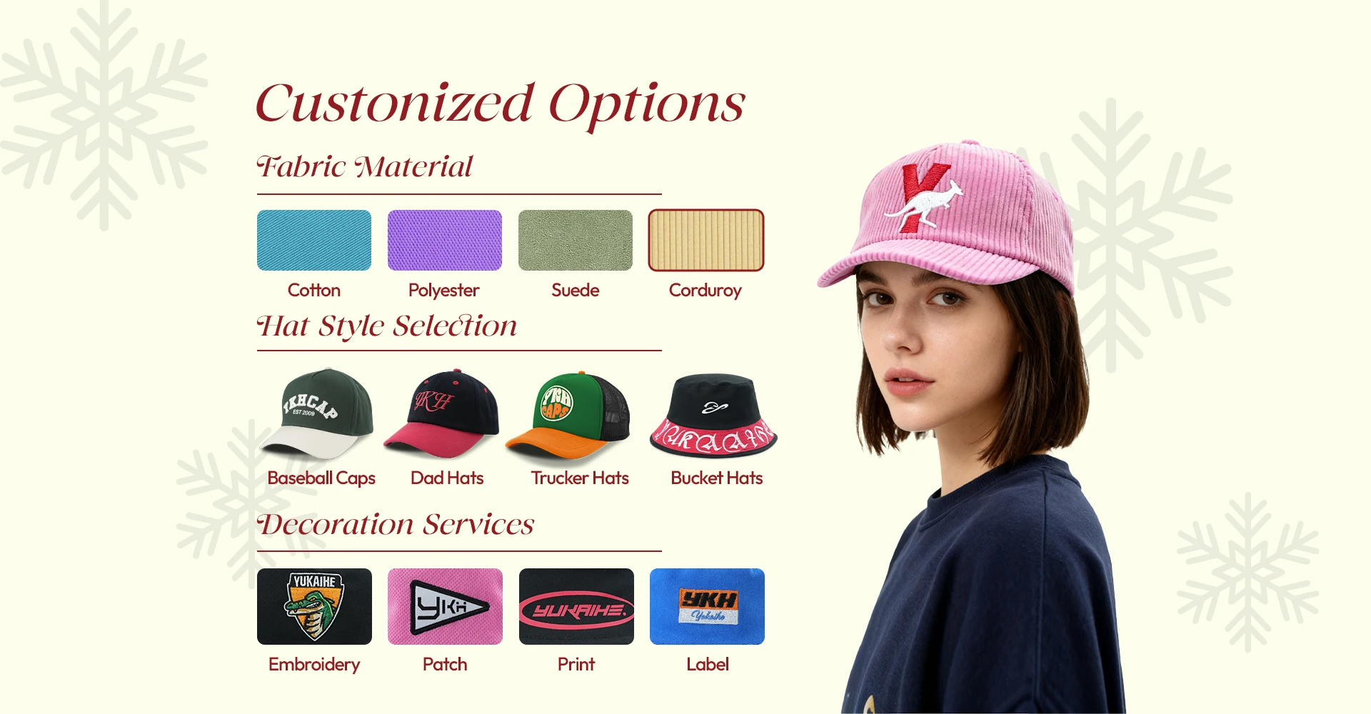 Sản Phẩm chính: Mũ bóng chày, mũ Trucker, mũ cha, mũ xô, Beanies